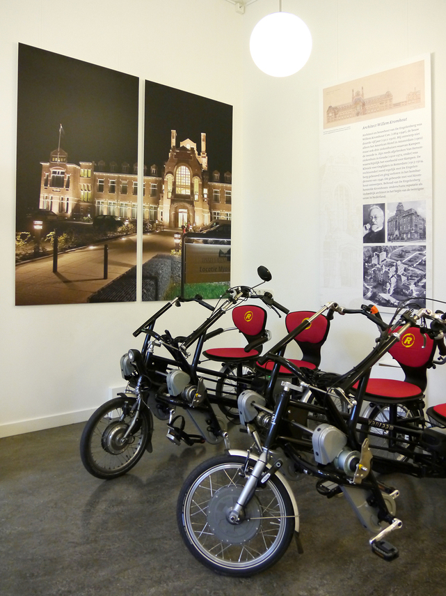 Het ziekenhuis is inmiddels omgebouwd tot verpleeg- en revalidatiecentrum Myosotis. In de centrale hal is een nieuwe familiekamer voor bewoners ingericht. De panelen zijn hier perfect op hun plek, want ze geven een overzicht van de bijzondere 100-jarige geschiedenis van het gebouw dat ternauwernood van sloop werd gered.